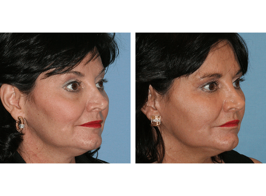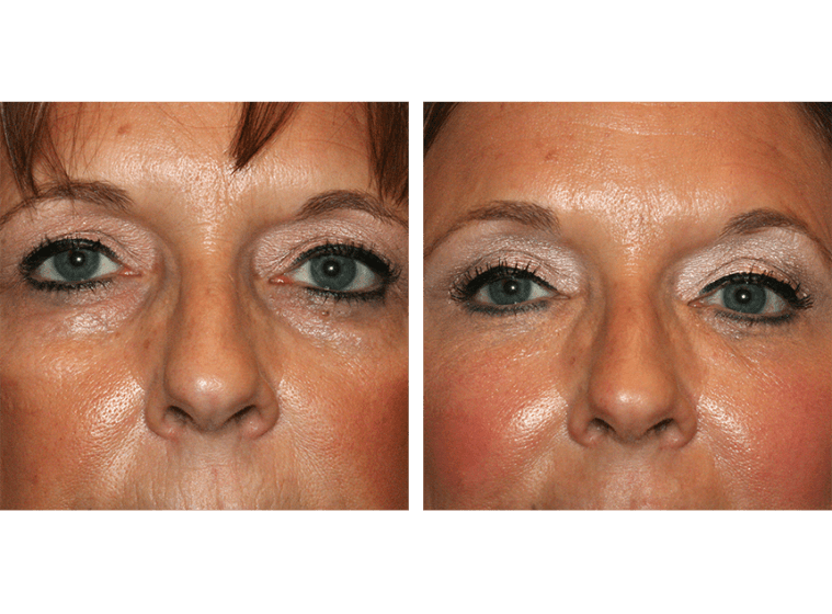 This patient desired facial fat transfer to the area under the eyes to help fill in the depressions that were contributing to dark circles. The ‘after’ photo on the right is 2 years after the procedure.